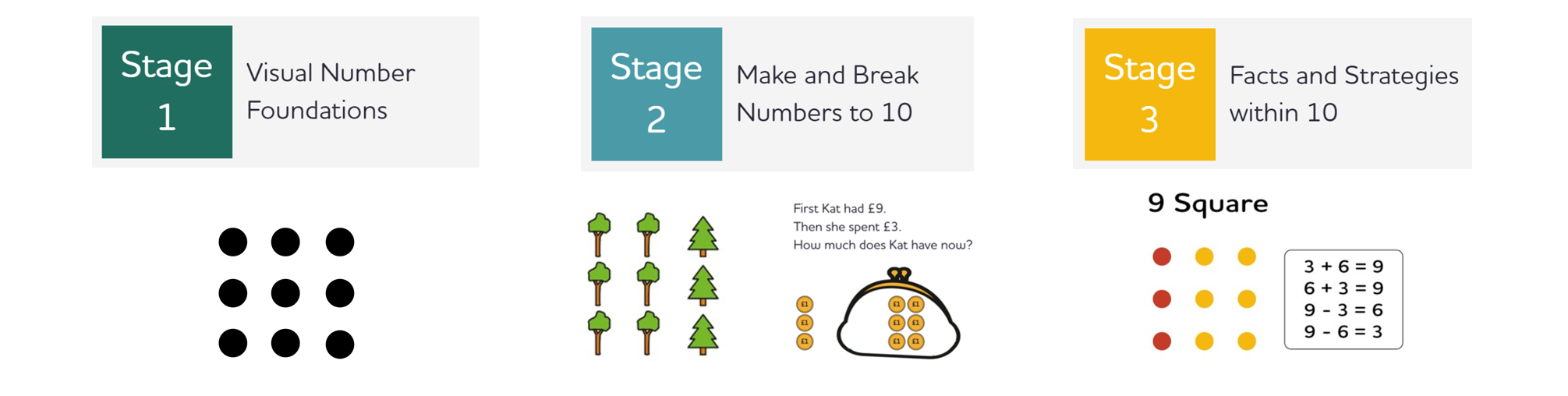Children's earliest experiences with number involve a visual processing of small quantities. We come into the world primed and ready to subitise, but it is a skill that also needs nurturing. We've thought carefully in every element of the number fact progression we use about how we can meet children at their starting points, and build on this skill as a route to fluent calculation. For us, visualising has shown itself to play an important role in making fluency in number facts an achievable goal for all children, and an engaging and talk rich part of the process of getting there.