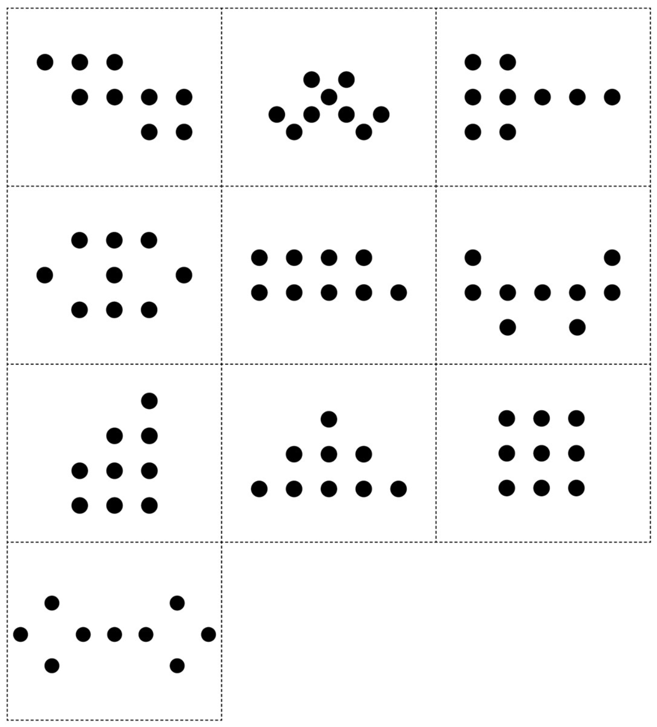 Of course, children need practice to be able to pull up and manipulate visual images in this way, and Stages 1 and 2 of the programme are all about attuning children to quantity and starting to build up mental images of numbers, before we actually start teaching the calculation strategies in Stage 3. Stage 1 introduces both the 9 square, and then tens frame, as well as some a couple of others structured arrangements that are drawn on in the course of the programme. The pupil conferencing assessment at the end of Stage 1 an easy way to check that children can recognise these.