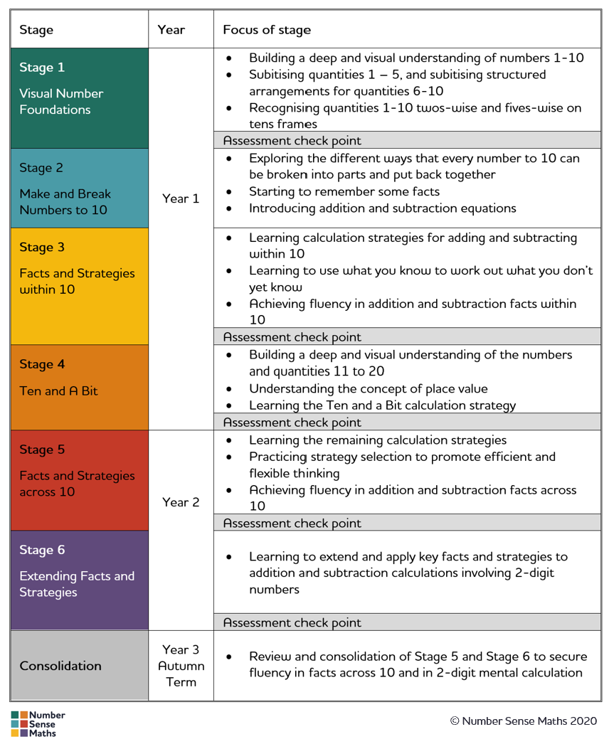 The programme teaches every addition and subtraction fact systematically. Just as schools can tell you where they teach each grapheme-phoneme correspondence in phonics, the Number Sense Maths Fluency Programme systematically teaches the facts and strategies leaving nothing to chance.
