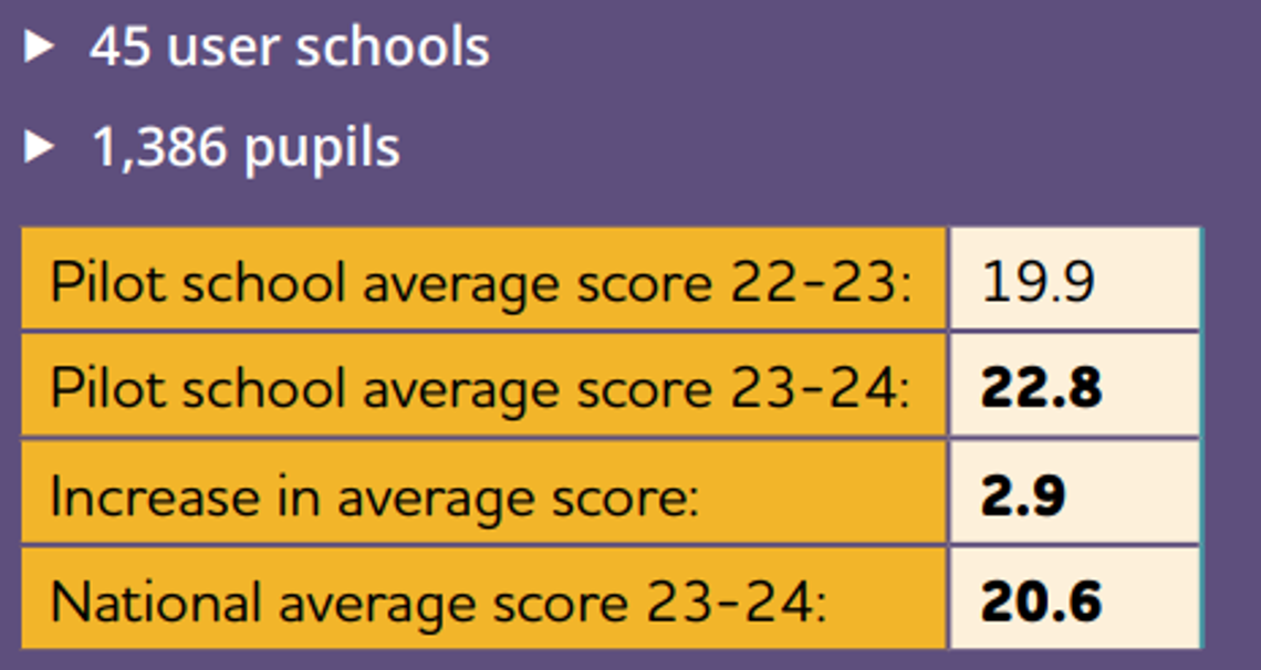 Schools taking part in our two-year pilot increased their average MTC scores from 19.9 out of 25 before using Times Tables Fluency, to 22.8 out of 25 after implementing the programme.
